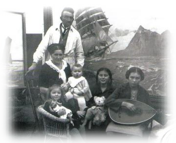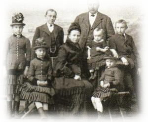 Das Bild von 1887 zeigt den Baumeister Folkert Janssen Folkerts mit Frau Johanna Reemtdina, geb. Meyer und den 6 Kindern. Poppe Folkerts ist der zweitälteste Sohn - ganz rechts.